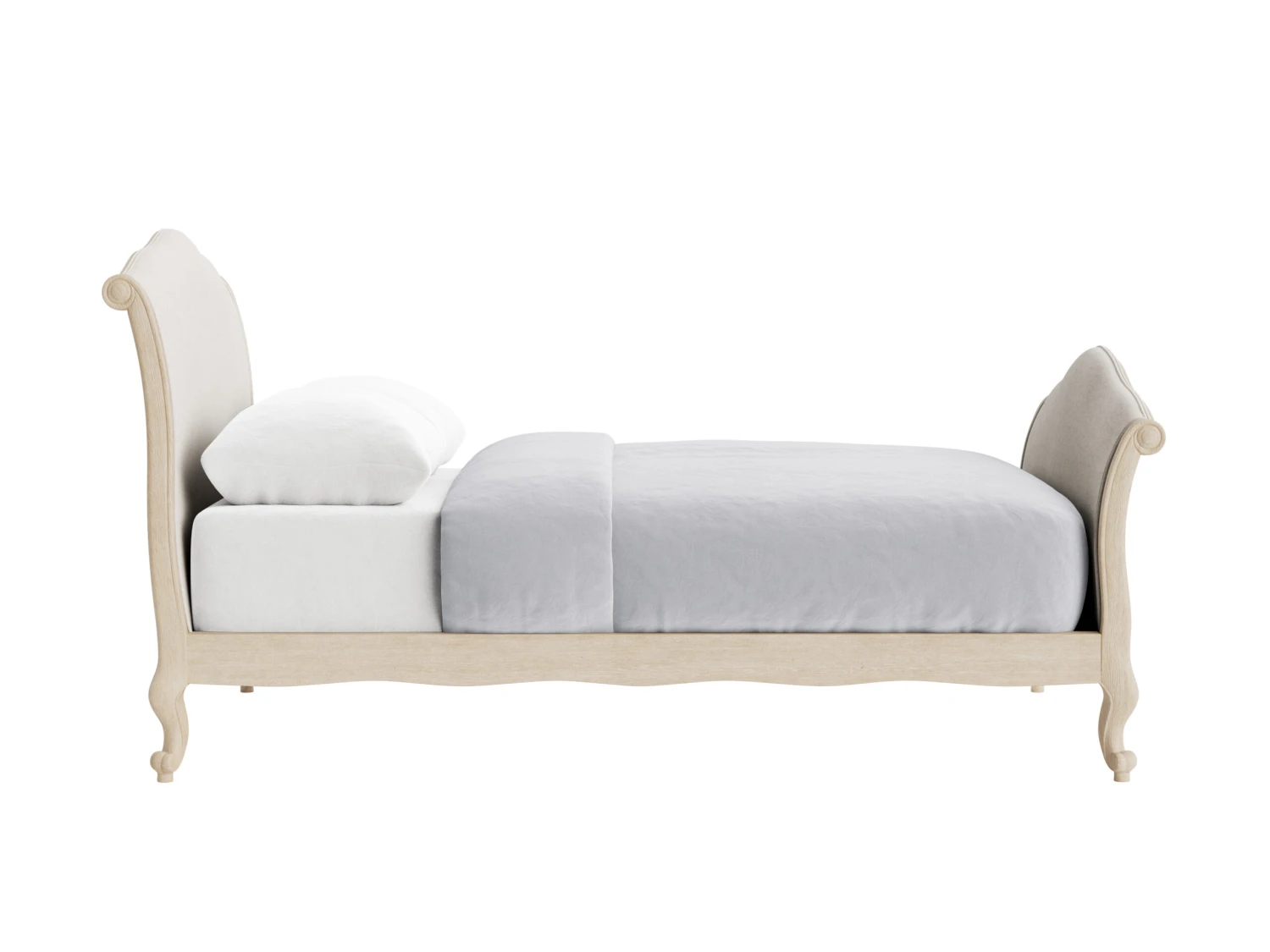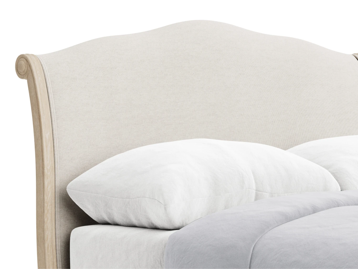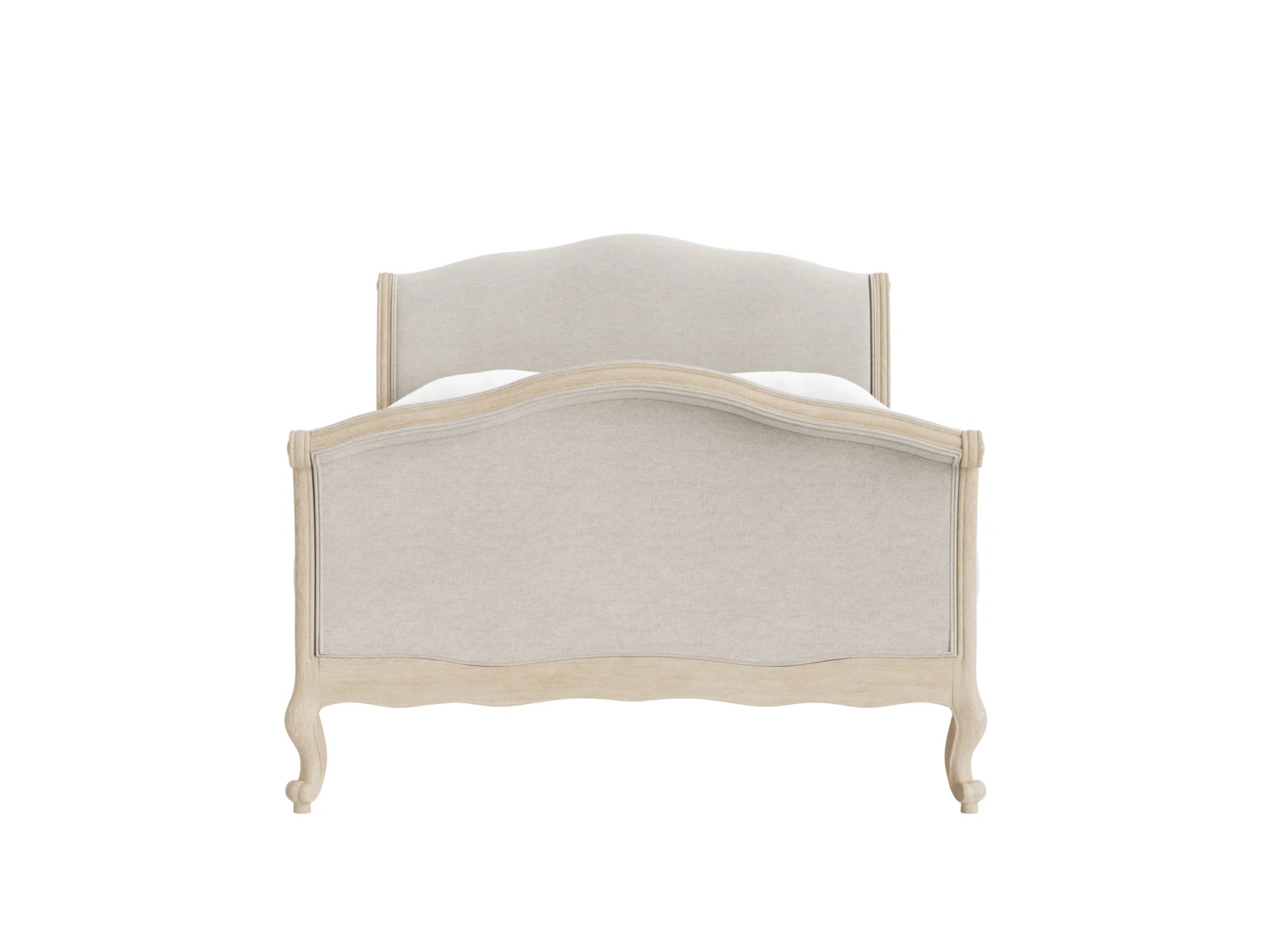 This hugely popular French bed is made of solid lightly weathered oak. Upholstered in a fabric of your choice, it’s also longer than the original antique version.
