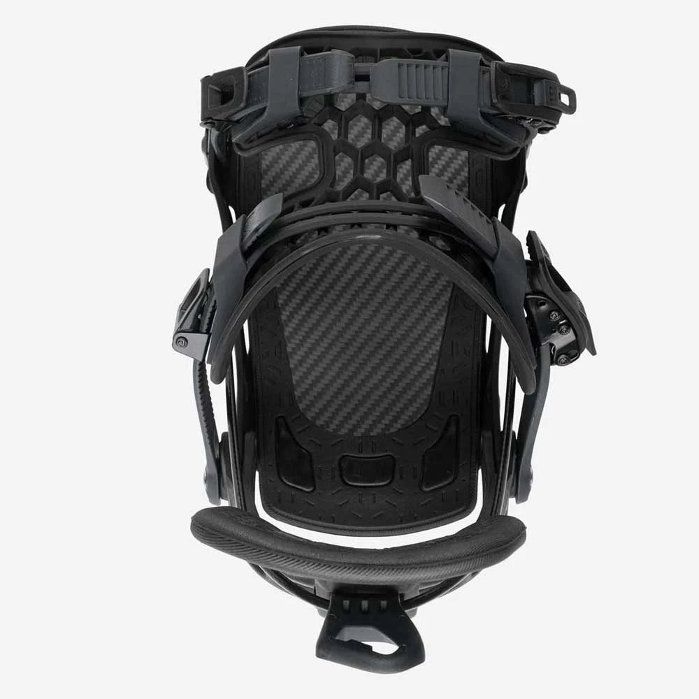 Ideal For High Performance Freeriding, Carving And Total Mountain Domination. The all-new NX2-Carbon is our most responsive binding yet. It’s a super stiff and lightweight design built for bombing steeps, railing carves and straight-up high performance shredding. Based on the legendary NX2 chassis, we’ve upgraded several components – starting with the single piece carbon-infused nylon Asym Uniback, which offers a perfect fit and exceptional control on the heel edge. The baseplate is precision-milled from aluminum and now features a tool-free footbed, with an exclusive carbon-composite Slip-N-Grip plate for smoother entry and firm response. Our latest ExoFrame-PRO Fusion strap is made from a stiffer TPU material that delivers power on tap; the wide shape spreads pressure over a greater area of your foot and maximises the legendary convenience of the Flow system with the help of premium aluminium Locking Slap Ratchets – just set it and forget it. Active Strap Tech raises the whole rig up automatically when the hiback is reclined, making it even quicker to get locked and loaded.
