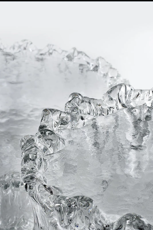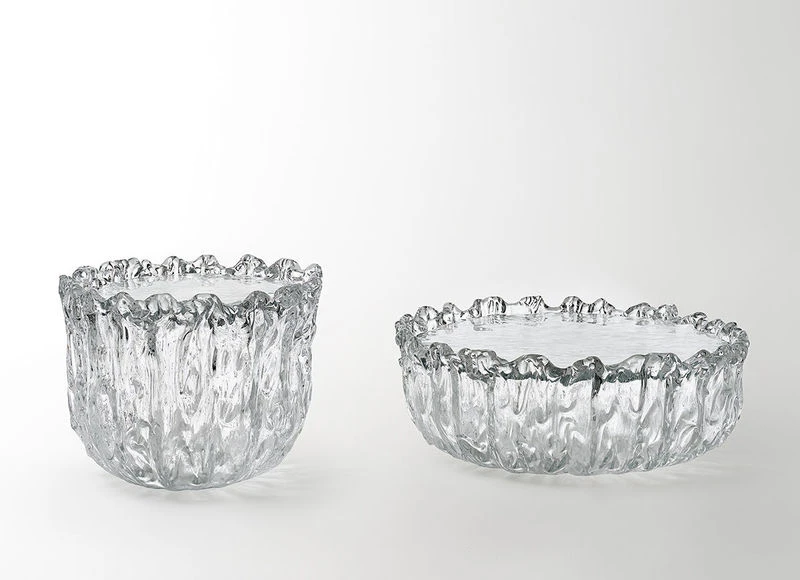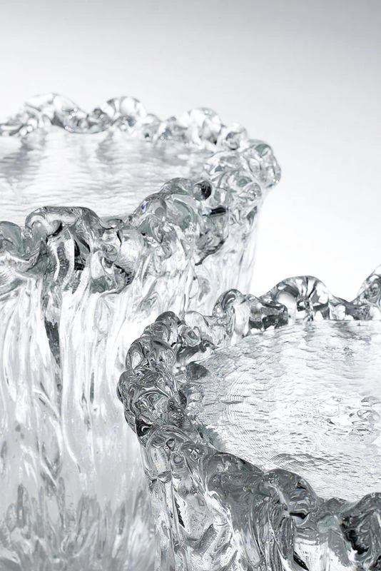 Fountain is a precious, poetic coffee table designed by the famous Japanese designer Naoto Kukasawa. The glass imitates to perfection water spouting from a source. Hand made in Italy, this table is crafted from Murano glass using traditional know-how. The glass is poured molten, shaped then chiselled by hand to create the effect of water in its liquid state. The glass adopts undulating, organic and irregular forms of crystalline beauty. The material is punctuated with numerous grooves that refract the light in a spectacular way. The table top is inserted inside the structure.