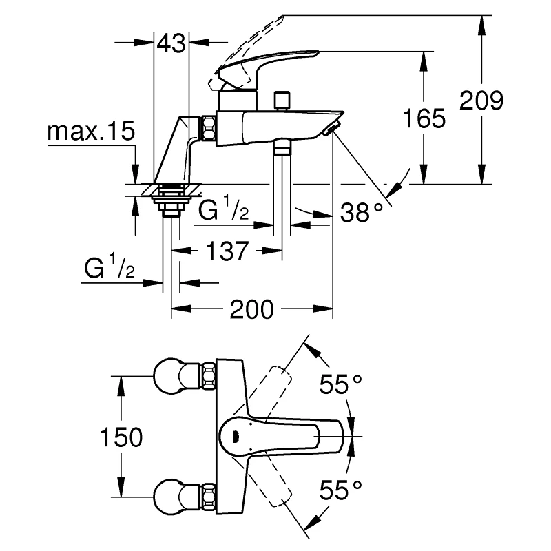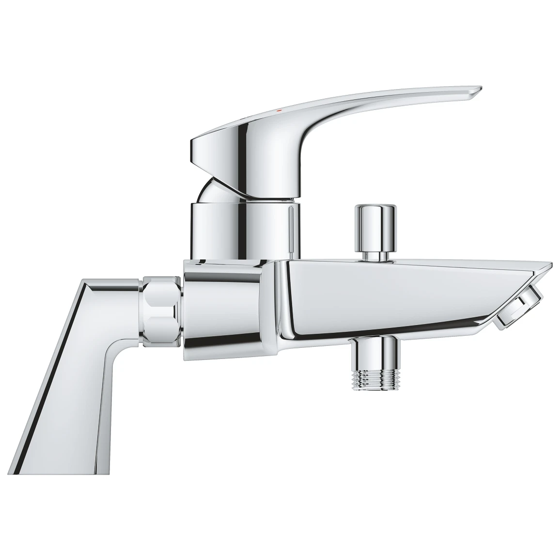 The Eurosmart pillar bath mixer is a practical and sustainable choice, with water-saving eco-override-stop feature and a solid metal lever handle for tactile operation. The Grohe SilkMove ceramic cartridge delivers precise volume and temperature control year after year. The eco-override-stop, an eco-friendly function, helps you to save water as you meet a subtle resistance when you lift the lever beyond an efficient water-saving flow rate. The handy automatic diverter makes it super easy to switch between bath inlet and hand shower. It comes with pillar unions, and an integrated non-return valve in the shower outlet prevents backflow of waste water into the water supply. Finished in the dazzling but hard-wearing Grohe StarLight chrome finish, this bathroom mixer will stay looking pristine for years to come.