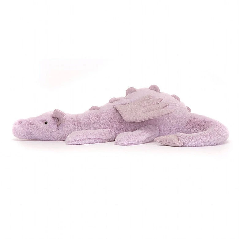 See that flash of lilac, high in the sky? Lavender Dragon’s about! Gliding to earth, this long, lopsy dragon makes such a fabulous entrance. With sparkly ears, wings, soft spines and tail dart, and cloudy-soft fur in bold berry purple, this magical friend is a gorgeous guardian.