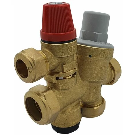 The unit comprises of a manifold containing a pressure reducing valve, a cold water balancing port, an expansion vessel connection, a check valve and a preset pressure relief valve.