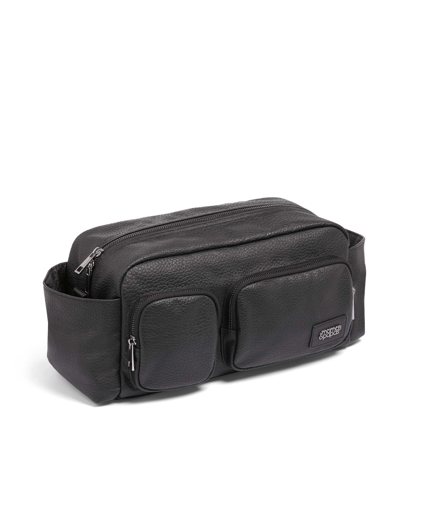 Compatible with our Ocarro, Strada and Airo pushchairs, this stylish black leatherette and gunmetal stroller organiser is a sophisticated way to keep baby’s belongings organised and easily accessible. Simple to clip onto the frame of your pushchair, it features multiple pockets for keeping all your essentials organised, internal insulated bottle holders to keep baby’s bottles upright and will keep their milk warm for on-the-go feeding.