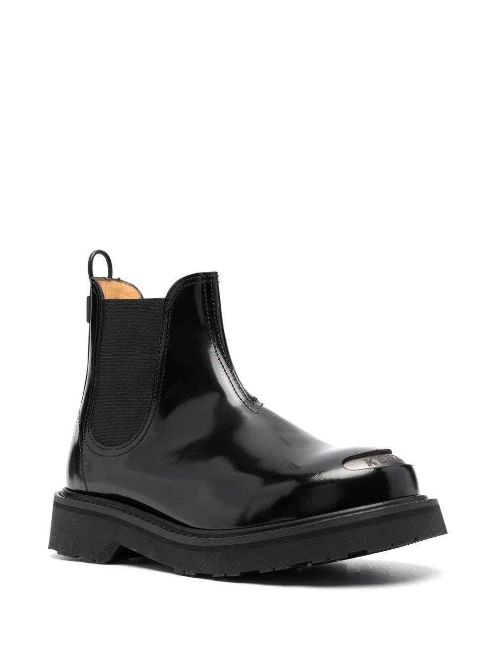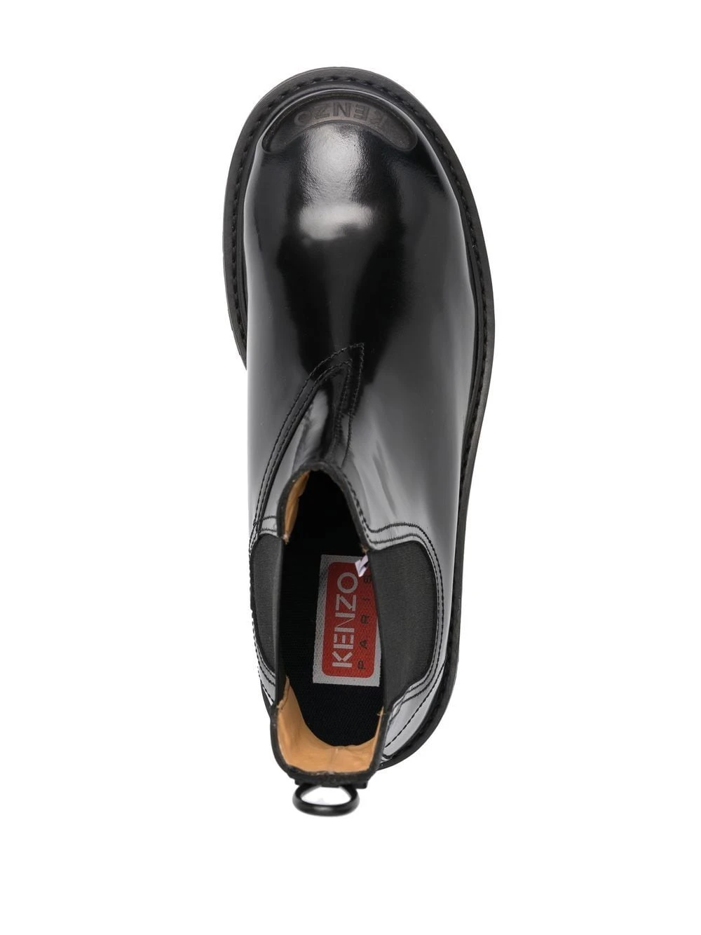 40mm chunky leather boots from KENZO featuring jet black, calf leather, pull-tab at the heel, elasticated side panels, round toe and mid block heel.