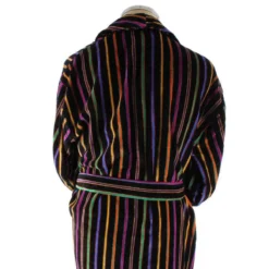 Bown Of London Mozart Bold Primary Striped Cotton Velour Dressing Gown – Black/Multi-colour