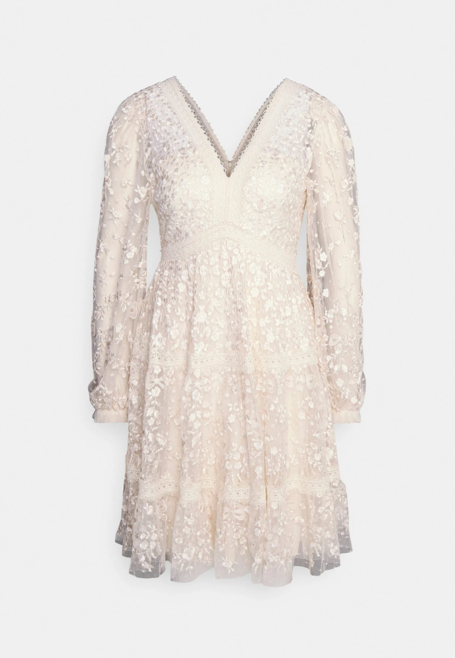 Needle & Thread Celestia Ribbon Mini Dress – Cocktail Dress / Party Dress – Champagne