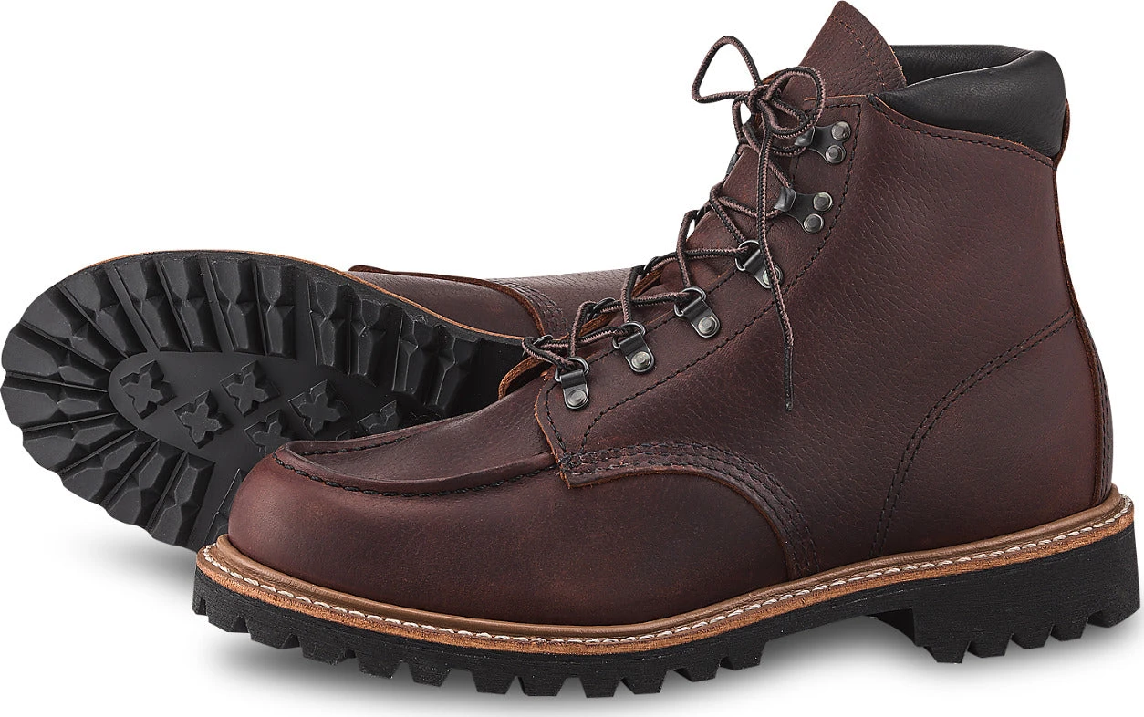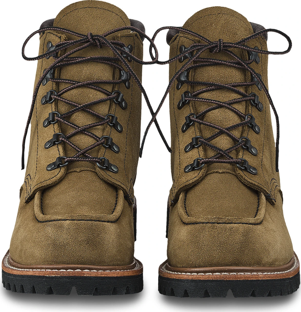 The Red Wing Shoes 2926 Sawmill in Olive Mohave is a Classic Red Wing Shoes Mocassin style and is made in Red Wing, Minnesota. The Red Wing 6″ Moc Toe boot was originally designed for hunters and farmers in the early 1950s. The Red Wing Moc Toe was built to withstand hard labor and harsh weather conditions. The name Red Wing ‘Moc Toe’ derives from ‘Moccasin’, the traditional Algonquian Indian word for the U-shape design of the toe. The Red Wing Shoes Sawmill is a winter variation on the ultimate Red Wing classic: The Red Wing 875. The Red Wing 2926 boot has a black Vibram Lug outsole which provides maximum grip and outstanding comfort and is Goodyear welted with a storm welt to keep the cold wet out. The Red Wing 2926 Sawmill comes with a beige canvas lining and a felted wool insole to create extra warmth and a high quality collar made from the same deerskin as our Red Wing gloves. The 2926 boot is equipped with speedhooks and comes with the tan/brown round taslan laces.