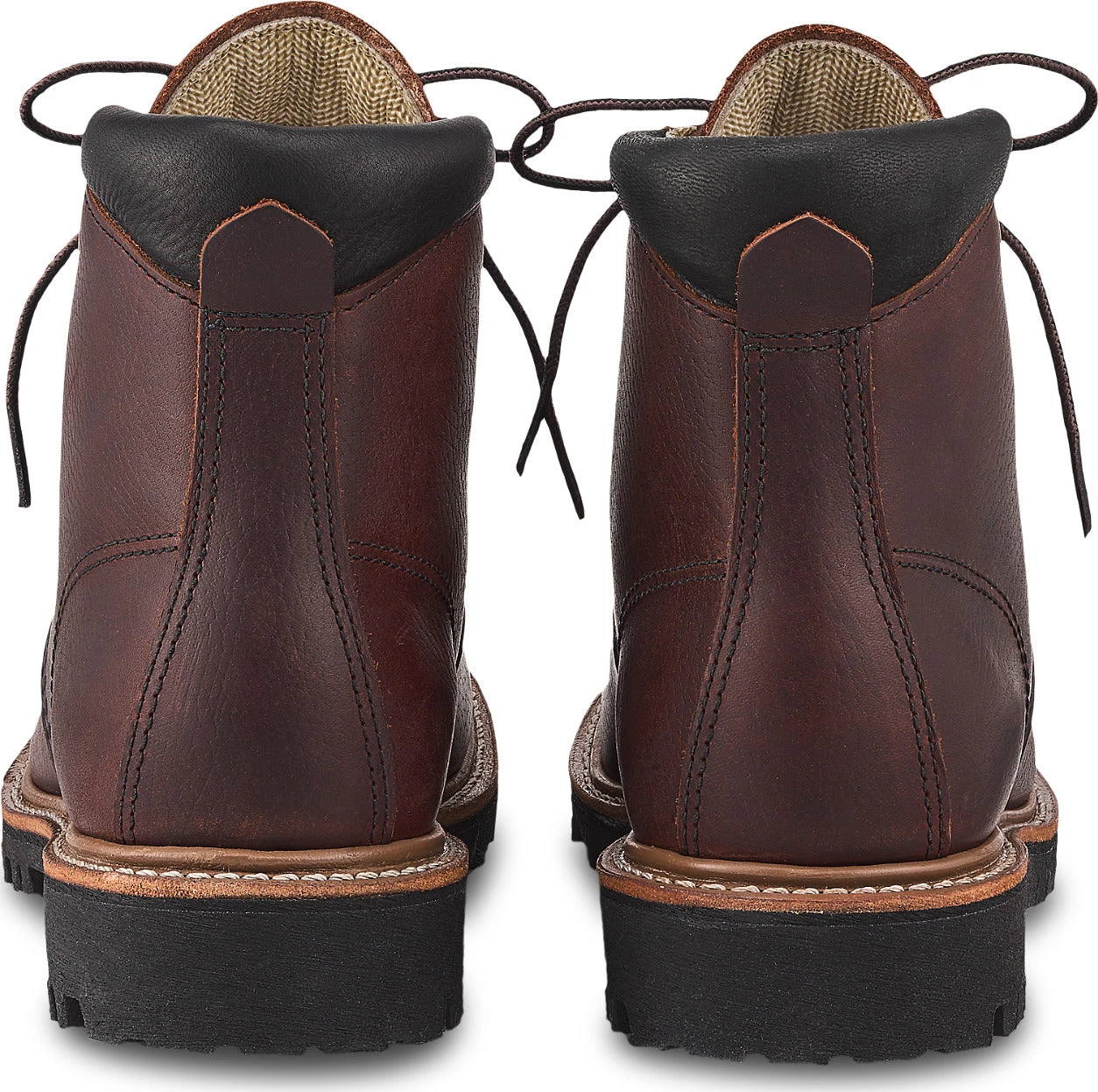 • Product Care: Nubuck Suede Cleaner set, Foam Leather Cleaner, Leather Protector|-|La bottine Red Wing 2926 Sawmill en Olive Mohave est une chaussure classique style mocassin fabriquée à Red Wing, Minnesota. La bottine Red Wing 6 pouces Moc Toe fut initialement conçue pour les chasseurs et les fermiers au début des années 1950. La Red Wing Moc Toe fut construite pour résister aux travaux pénibles dans des conditions météorologiques difficiles. Le nom Red Wing « Moc Toe » dérive du mot « Moccasin », le mot indien algonquien traditionnel pour la forme du bout en U. La Red Wing Sawmill est une variante hivernale de la chaussure classique ultime Red Wing : la Red Wing 875. La bottine Red Wing 2926 est dotée d’une semelle d’usure noire Vibram Lug qui offre une adhérence maximale et un confort exceptionnel. Elle bénéficie d’un montage Goodyear avec une trépointe en Y (« storm welt ») pour protéger du froid et de l’humidité. La Red Wing Sawmill 2926 présente une doublure en toile beige et une semelle intérieure en laine feutrée pour apporter de la chaleur en plus ainsi qu’un col de haute qualité fabriqué dans la même peau de daim que nos gants Red Wing. La bottine 2926 est équipée d’attaches rapides et est livrée avec des lacets taslan ronds bruns/marron.