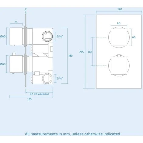 The thermostatic showering can be accessed via the 2 dial 2 way easy-to-operate dial controls – separate controls for temperature and flow; giving you full temperature control.