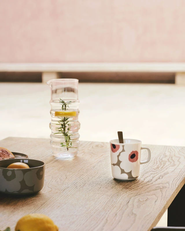 Maija Isola’s iconic Unikko flower motif is the emblem of the Marimekko design house. It was designed in 1964, just after the founder of the Marimekko brand, Armi Ratia, publicly announced that she was banning floral motifs, which were considered hackneyed. Maija Isola defied her by drawing a series of floral designs whose style was so innovative and fresh that Armi changed her mind. Ironically, the Unikko motif has become the emblem of the brand. Cheerful, chic and graphic, the tableware collection by Marimekko brings your interior to life! The simple shapes showcase the collection’s stunning designs. You can compose a coordinated service yourself, or mismatch cups, plates and bowls to create your own style! Made to last, Marimekko cups, mugs and plates are made of ceramic stoneware and their patterns have been designed not to fade over time. Compatible with the demands of modern life, all the items in the collection are suitable for microwave, dishwasher and freezer. Created in 1951, Marimekko is a state of mind, a way of life based on creativity, freedom of spirit and inventiveness. Its notoriety dates back to 1960, the year in which Jackie Kennedy made several public appearances in dresses designed by Marimekko. The brand went on to enjoy enormous success, which continues today with a range of clothing and decorative accessories in vibrant colours, for a house full of inspiration!